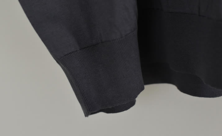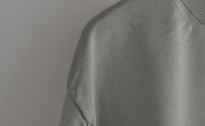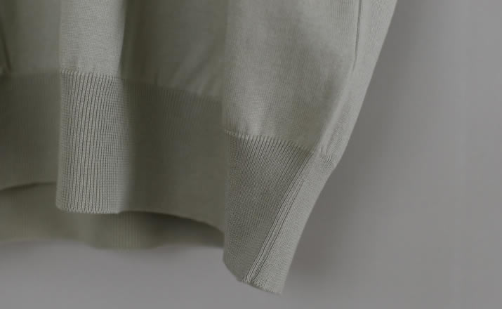 特別な編み機で多本取りにし編みたてた1着。