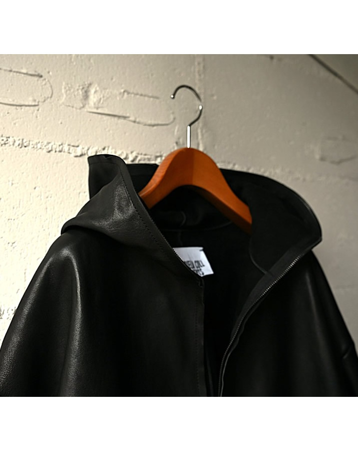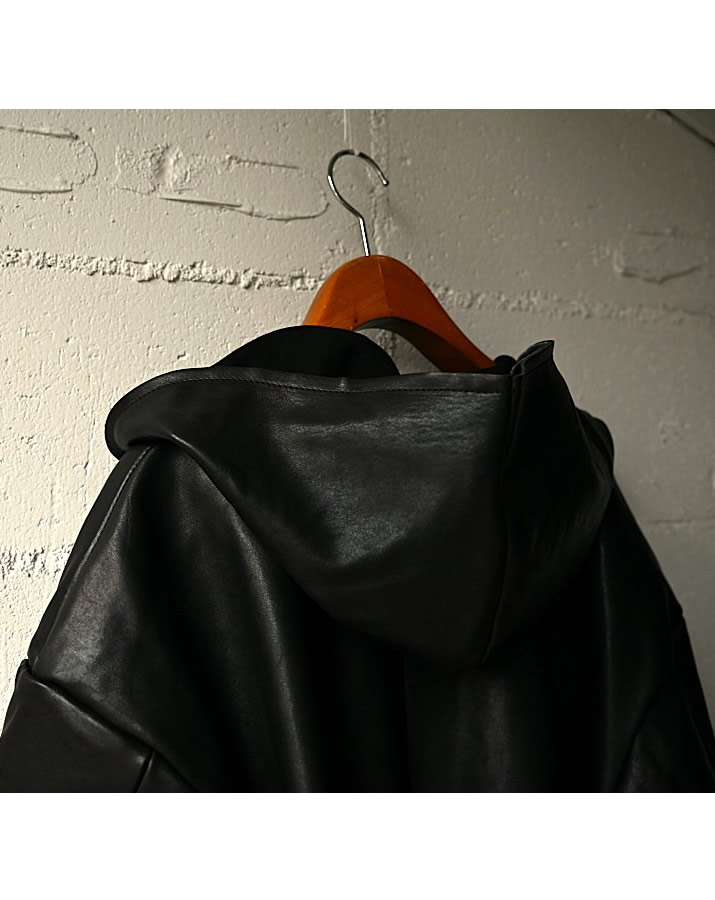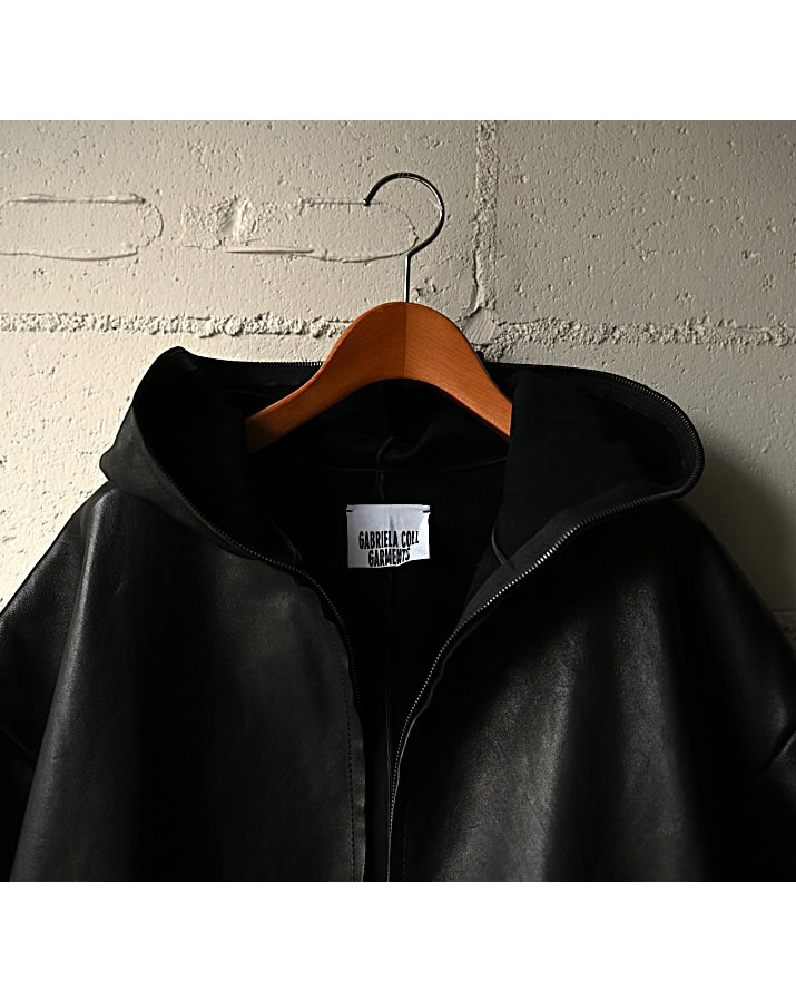 GABRIELA COLL GARMENTS / LAMB LEATHER HOODED BIG ZIPPER JACKET