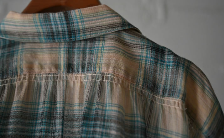 随所にチェーンステッチやギャザーを手作業で入れるなど、