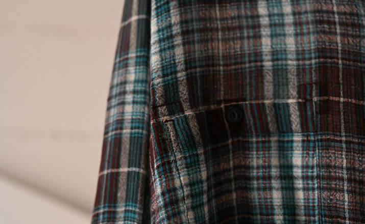 ビスポークのオンブレチェック生地を用いたワークシャツ。