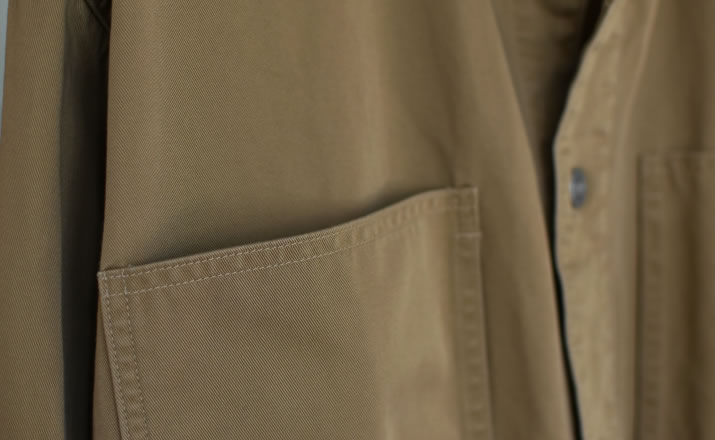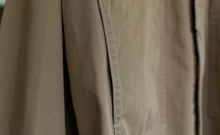 1950年代〜60年代のミリタリーチノをイメージして製織した生地に特殊加工を施し、
