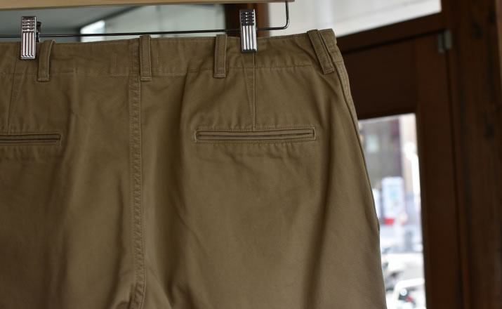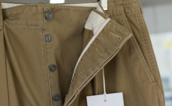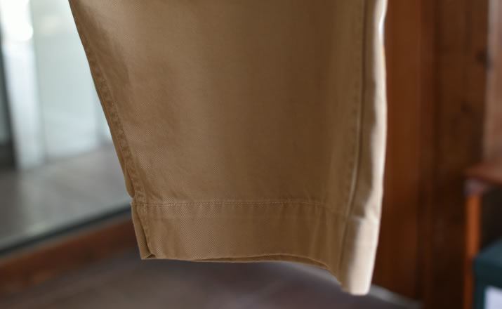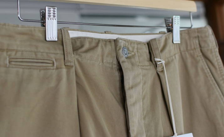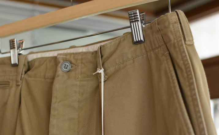 オーバーインチのチノをウエストで畳んでタックを作ったことにより