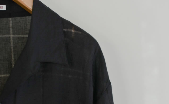 極細手紡ぎ手織りのカディ生地を使用したロースロープシャツ。
