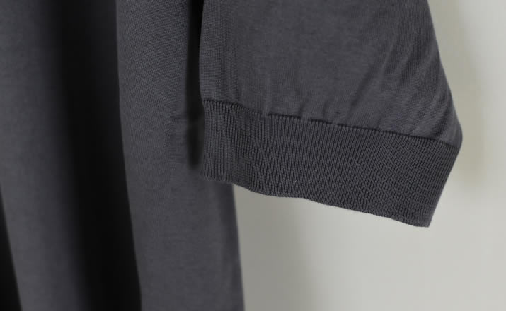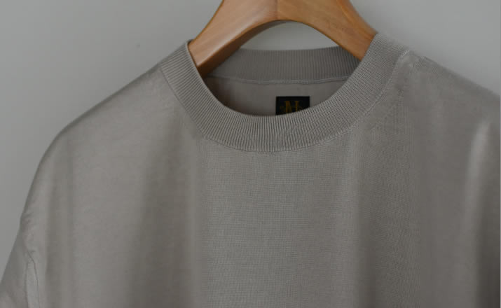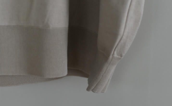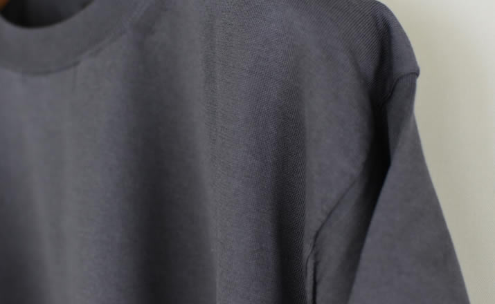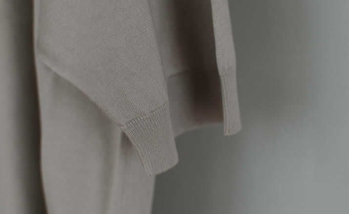 特別な編み機で多本取りにし編みたてた1着。