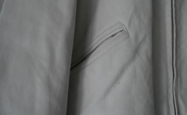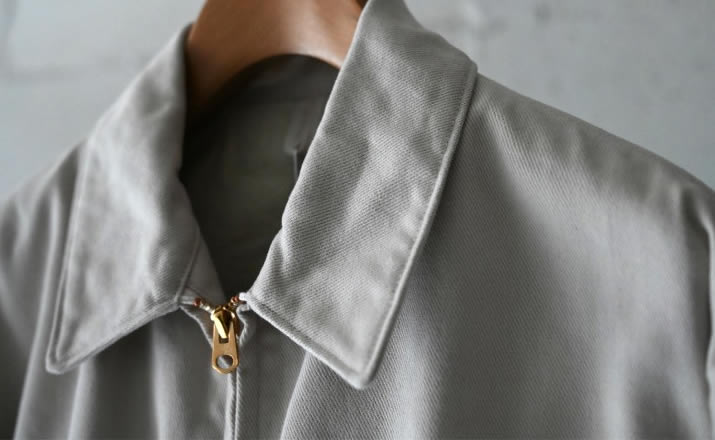 僅かに起毛した、しっかりとしながらにソフトな質感のツイルを使用したショートジャケット。