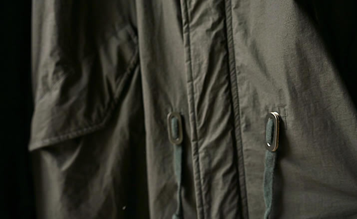 そして何より軽く、経年変化を楽しめるコットンナイロン素材でフーデッドコートタイプが登場しました。