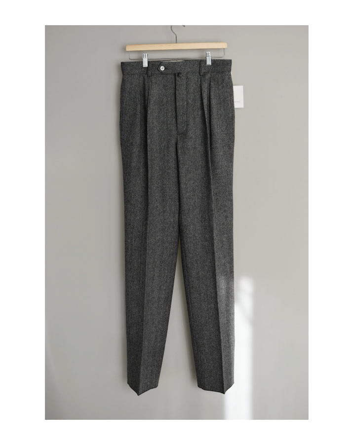 タテ糸を濃色と淡色の杢糸にすることにより表情に奥行があり