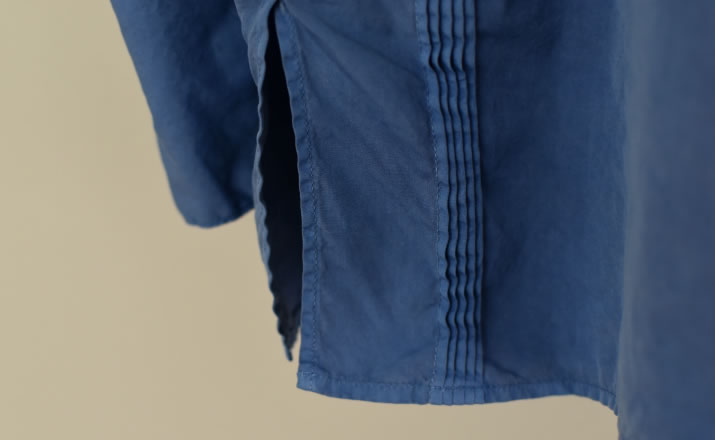 スウェットパンツにも寄り添ってくれる懐深いピンタックシャツです。