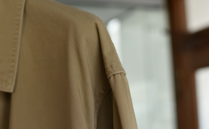 1950年代〜60年代のミリタリーチノをイメージして製織した生地に特殊加工を施し、