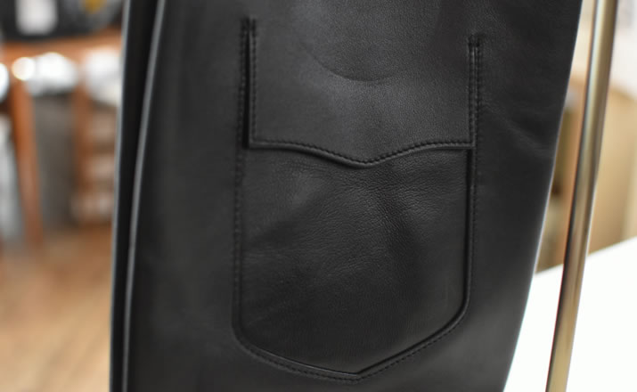 フロントにフラップポケット、バックにはパンチングワッペンを配置。