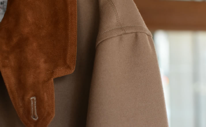 仕上げの強プレスによりしたたかに艶を持つメルトンと